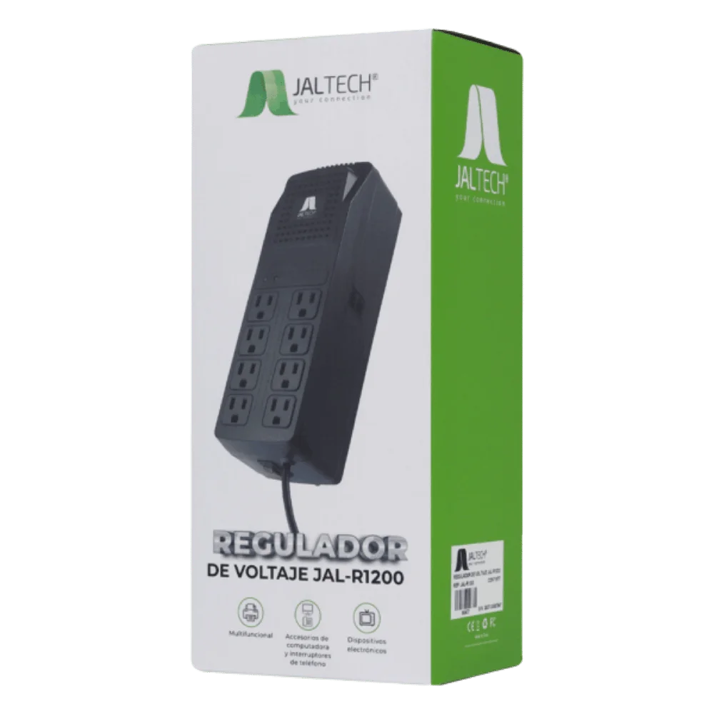 • El Jaltech R1200 es un regulador de voltaje confiable y eficiente, diseñado para proteger equipos electrónicos sensibles frente a las irregularidades del suministro eléctrico. Su sistema AVR (regulación automática de voltaje) estabiliza la corriente, evitando daños causados por subidas, bajadas o picos de energía, lo que ayuda a prolongar la vida útil de los dispositivos conectados.