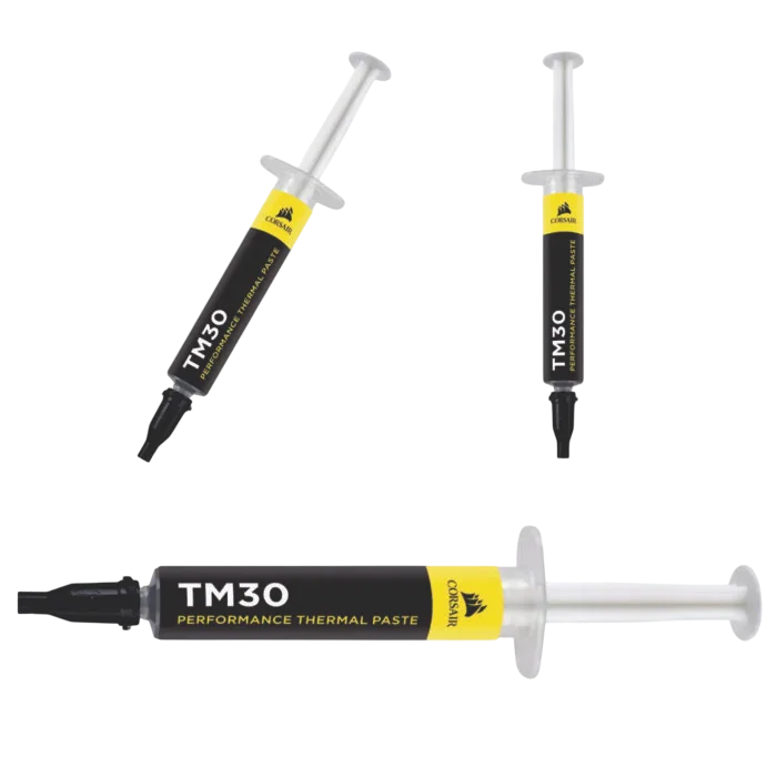 La pasta térmica CORSAIR TM30 le ayuda a obtener el máximo rendimiento de su PC, con un material térmico de óxido de zinc premium de baja viscosidad y fácil de aplicar.
