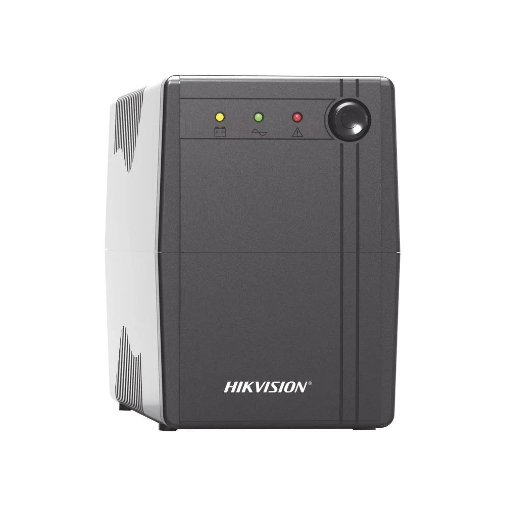 UPS Hikvision 600VA / 360W con batería interna de 12V, regulación automática de voltaje (AVR) y 6 tomas de corriente. Ideal para proteger PC, routers, cámaras y equipos electrónicos frente a apagones y variaciones eléctricas.